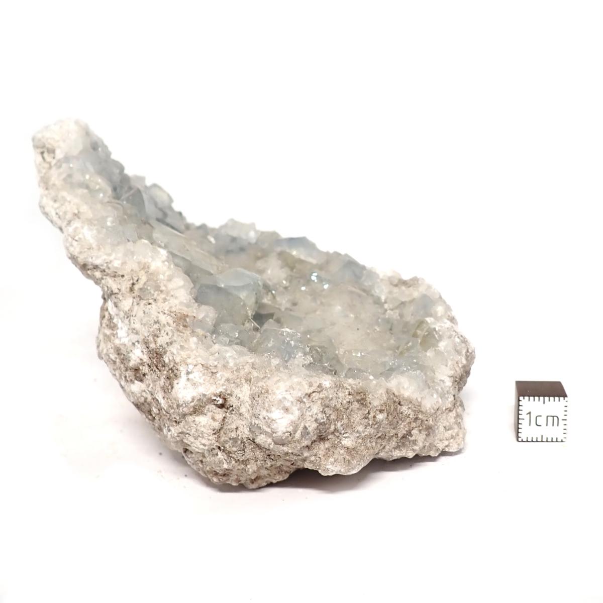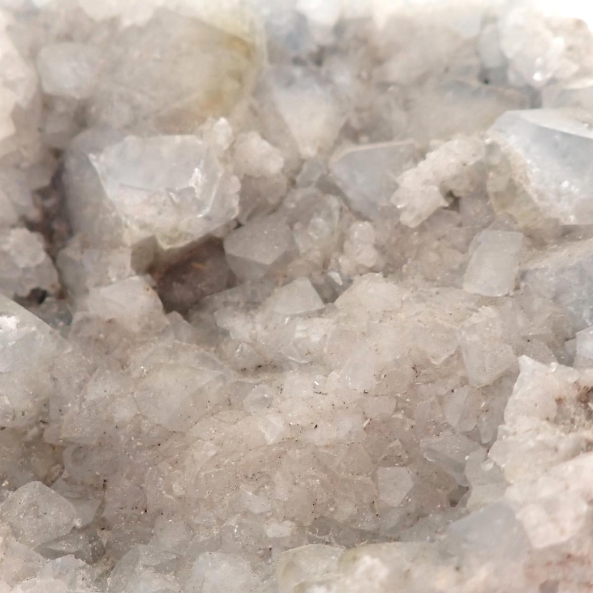 En géode, la Célestine est précieuse pour élever le taux vibratoire d’un lieu, apportant paix et harmonie dans les espaces de vie. Son énergie pure et calme crée une ambiance propice à la relaxation, tout en instaurant un équilibre énergétique. Elle est donc idéale dans les espaces de méditation ou de repos, comme les chambres à coucher ou les salons.
